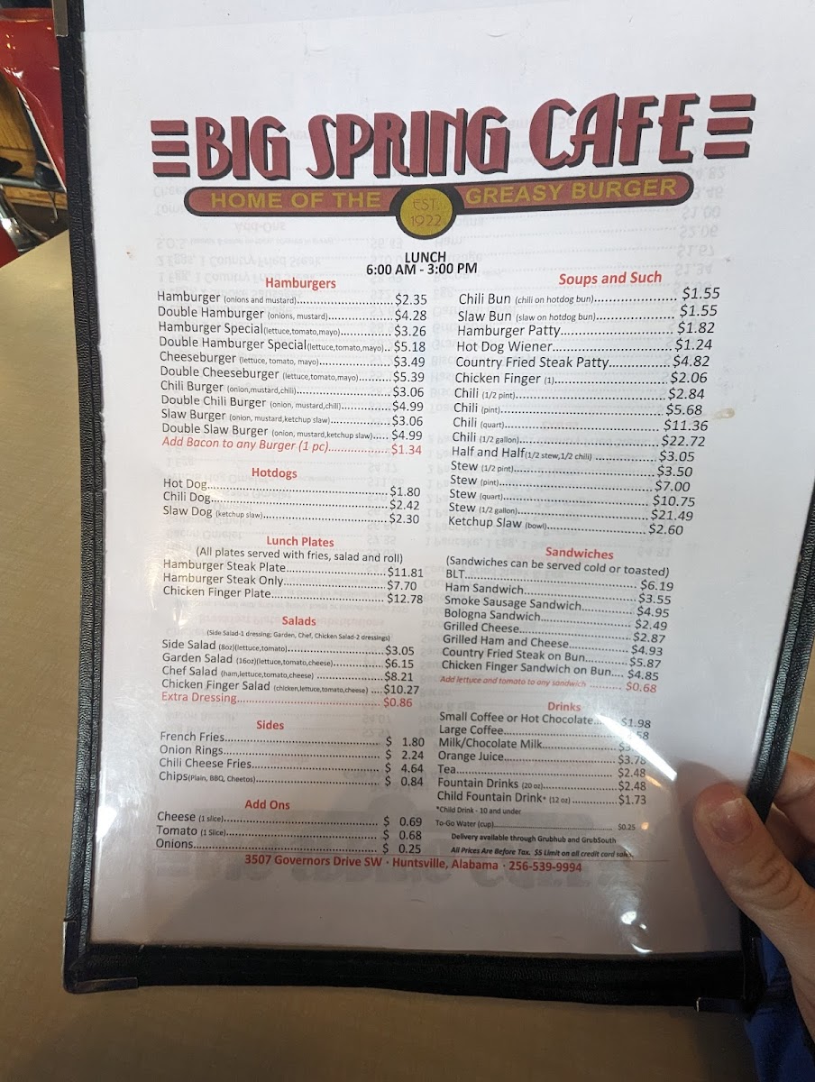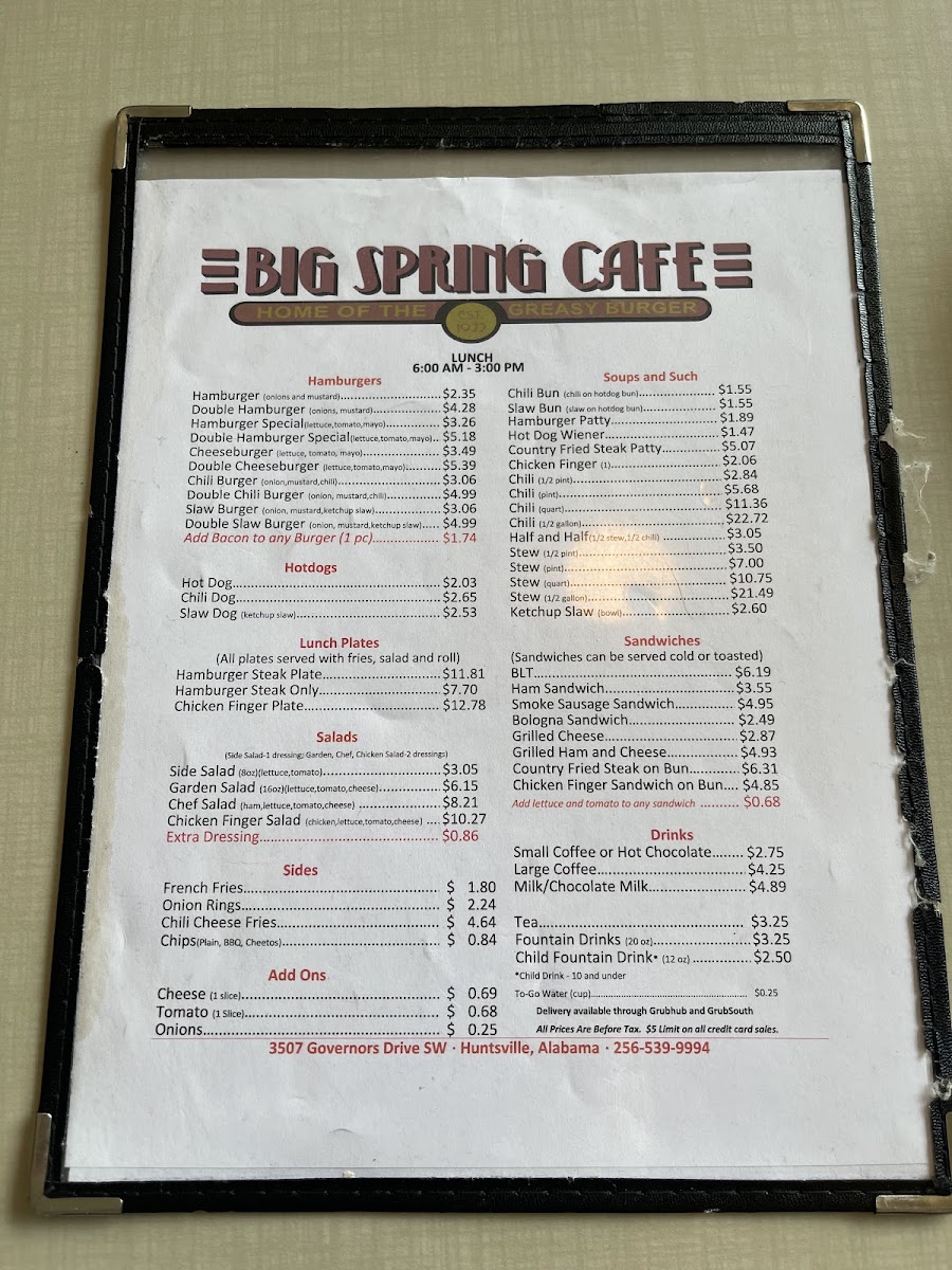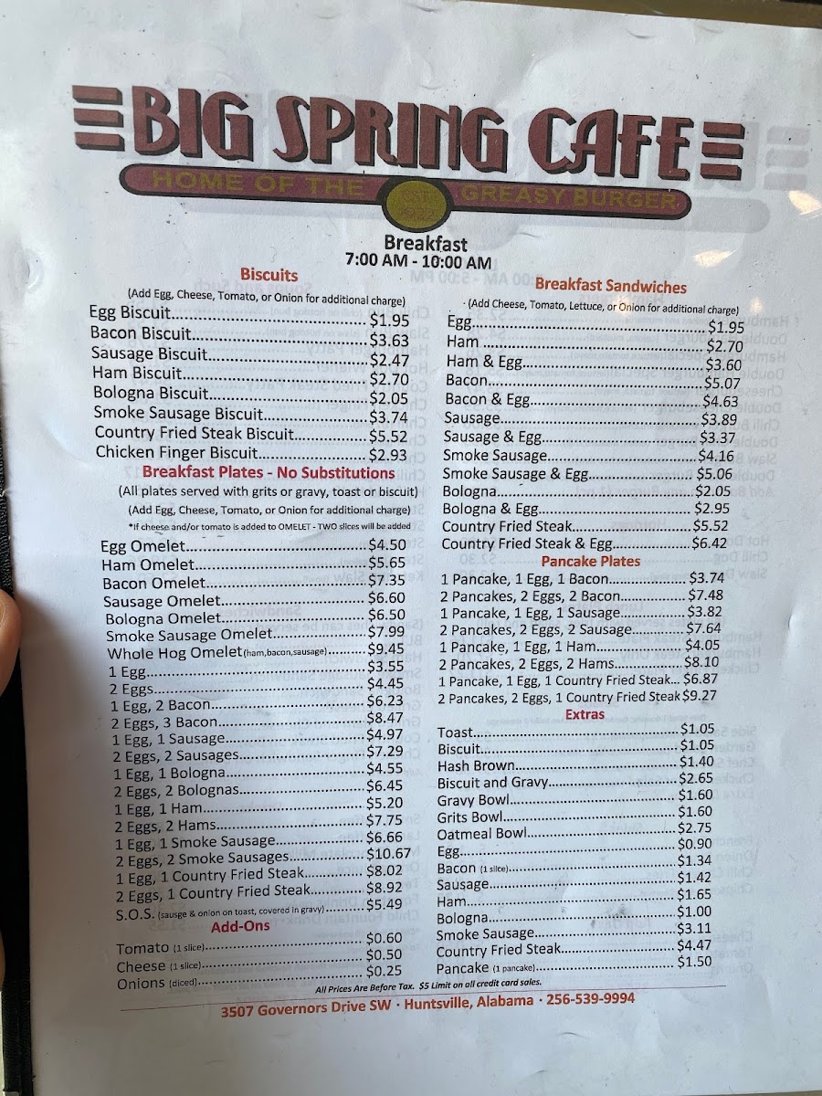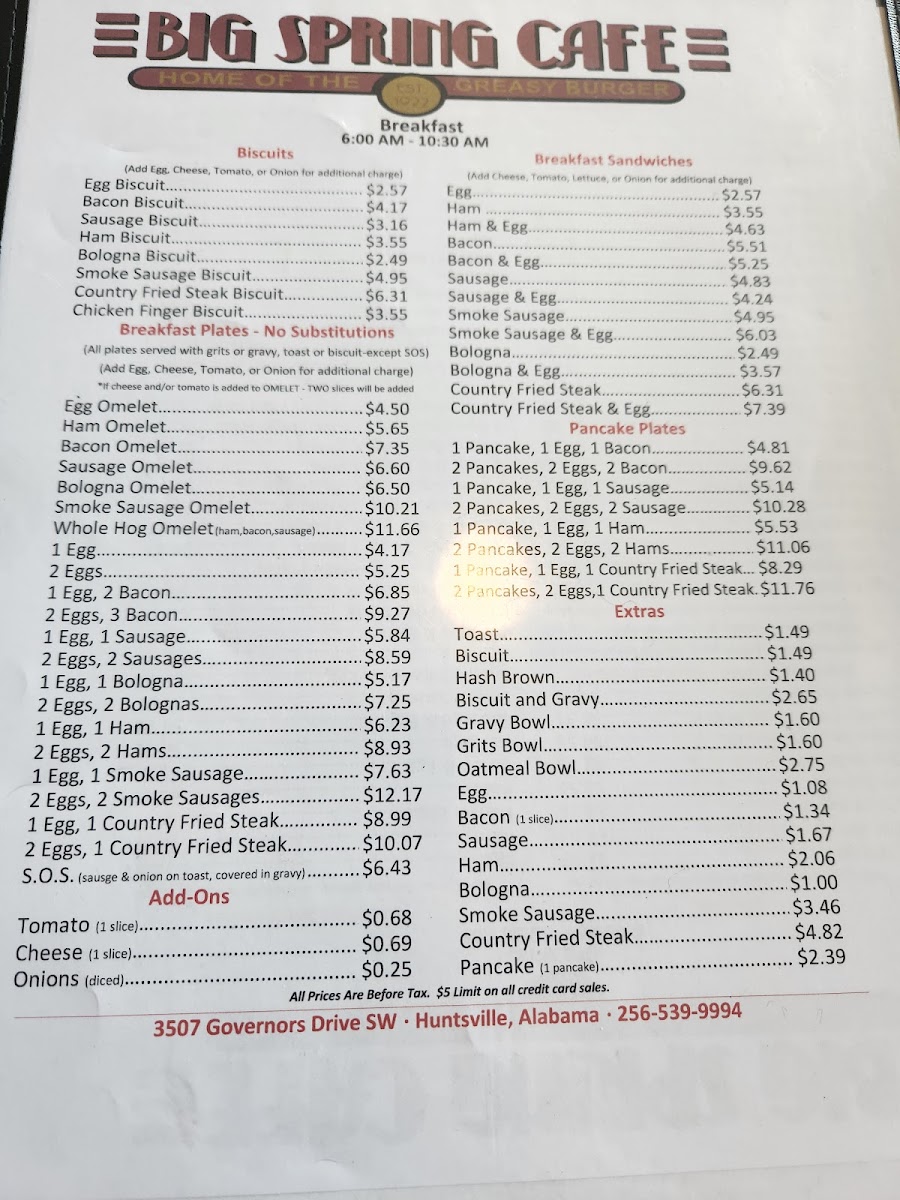 If you're in the Huntsville area and craving a delicious meal, the Big Spring Cafe Menu is a must-try. Located at 3507 Governors Dr SW, this local gem offers a variety of dishes that cater to all tastes, whether you're in the mood for a hearty breakfast, a savory lunch, or a satisfying dinner. The menu features everything from classic comfort foods to fresh, flavorful options, ensuring there's something for everyone.