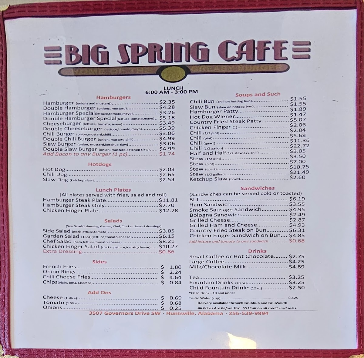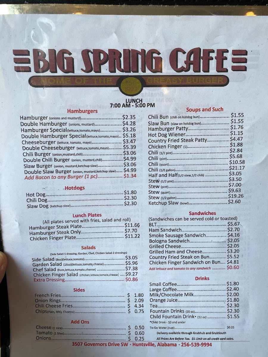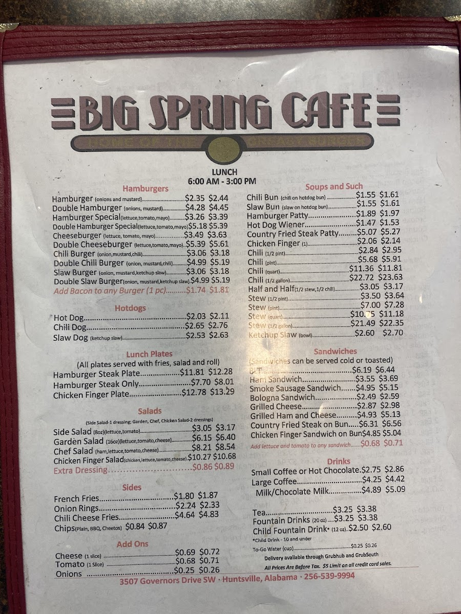 If you're in the Huntsville area and craving a delicious meal, the Big Spring Cafe Menu is a must-try. Located at 3507 Governors Dr SW, this local gem offers a variety of dishes that cater to all tastes, whether you're in the mood for a hearty breakfast, a savory lunch, or a satisfying dinner. The menu features everything from classic comfort foods to fresh, flavorful options, ensuring there's something for everyone.